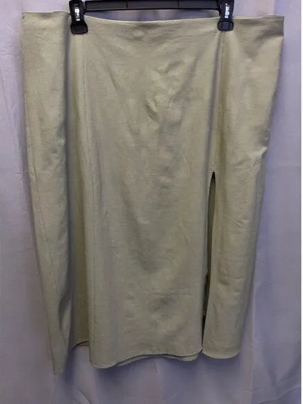 High-Waist Midi Skirt with Side Slit Size XXL SKU 7065 Add a touch of sophistication to your wardrobe with this minimalist high-waisted midi skirt. Crafted in a soft, neutral sage green shade, it offers a versatile and timeless look for any occasion. The subtle side slit adds a modern, feminine flair while ensuring ease of movement. Key Features: • Stylish midi length for a chic and flattering silhouette • High-waisted design for a tailored, polished fit • Soft, lightweight fabric for all-day comfort • Side slit for added style and functionality Perfect for pairing with a blouse and heels for a professional look or a fitted top and sneakers for a casual vibe. A wardrobe essential for every season! Size: Womens XXL Condition: Pre-Owned Good This item has been cleaned, sanitized and deodorized. Although we clean our items additional cleaning may be needed such as spot treatments, etc.