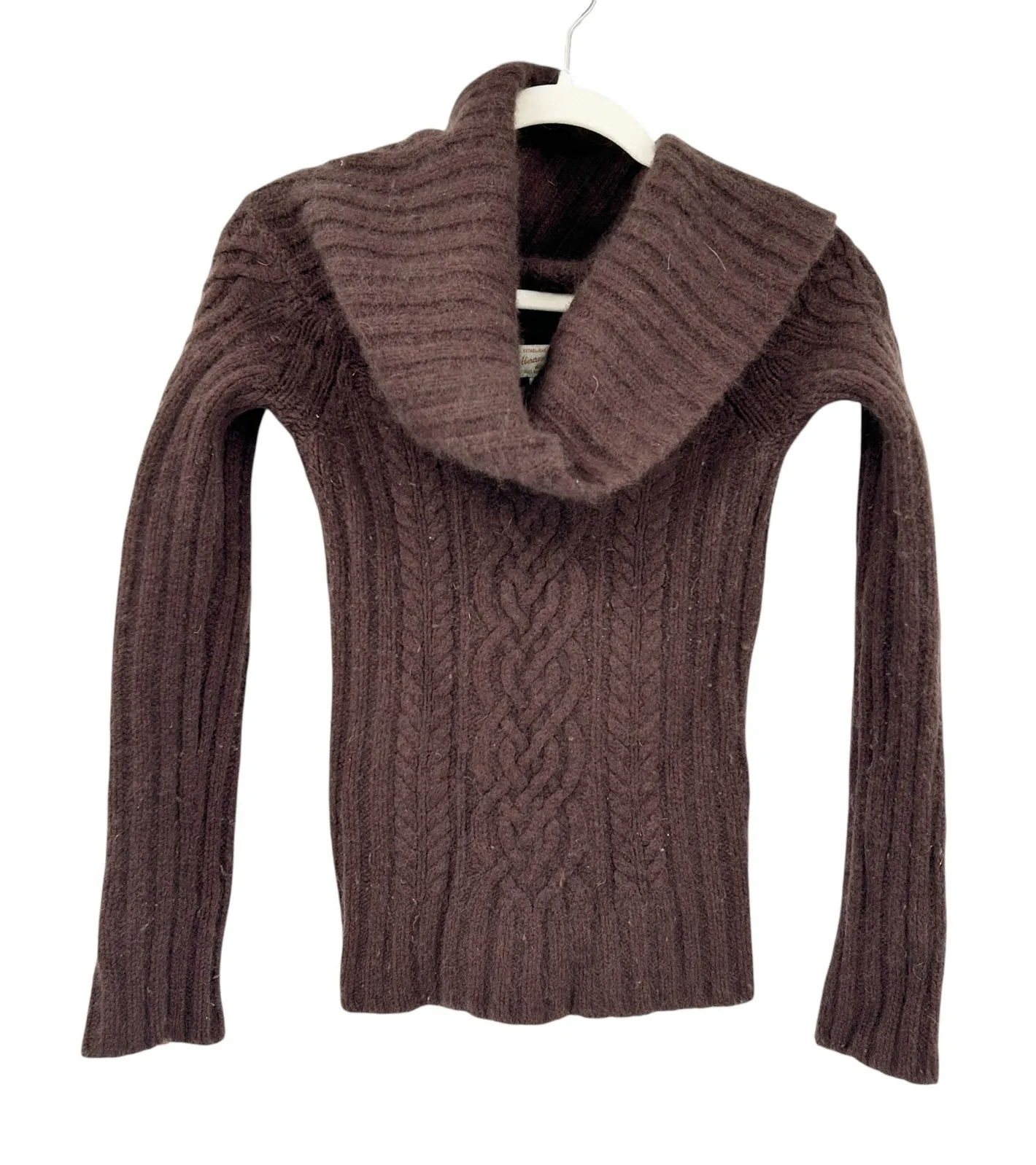Abercrombie & Fitch Womens Vintage Wool Cashmere Blend Cable Knit Sweater in Chocolate Brown. Size L... Show more