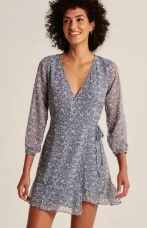 V-Neck Three-Quarter Sleeve Wrap Front Floral Sheer A-Line Tie Waist Mini Length Lined Polyester Vis... Show more
