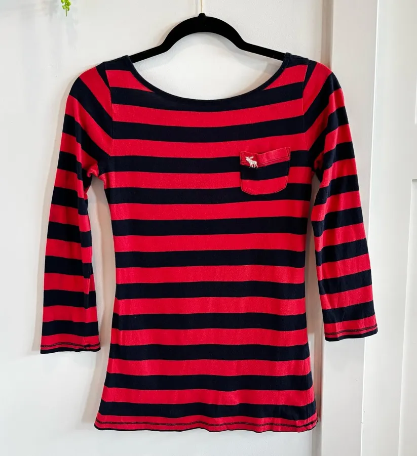 Abercrombie & Fitch Y2K Vintage Women's Striped 3/4 Sleeve Scoop Neck Back XS Blue - $18 - From Jena