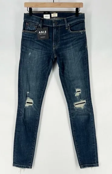 ABLE Jeans The Skinny Ripped Distressed Dark Denim In Aracelly Wash Size 26 Size: 26 Measurements... Show more
