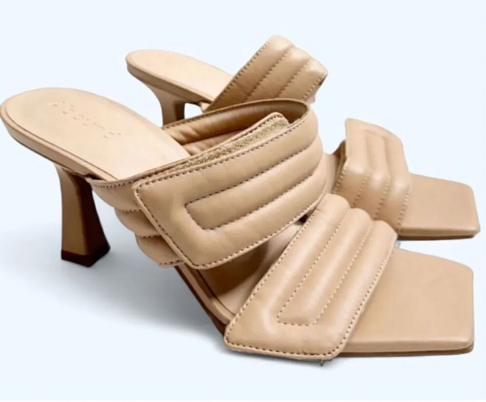 Abound Shoes Womens Size 6 Qarly Heeled Tan Square Toe Slip On Sandals New without tags 3” inch h... Show more