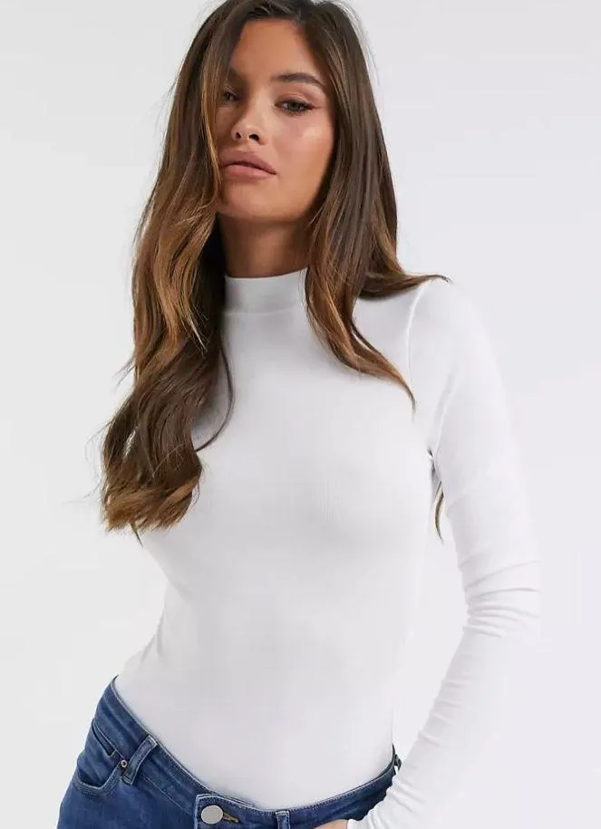 White bodysuit with mock/turtleneck. Long sleeved. Worn once but a little loose on me. Super soft an... Show more