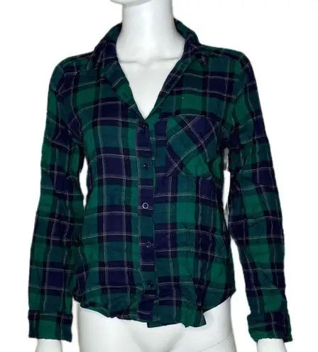 Abound Women's Green/Blue Plaid Flannel Long Sleeve Button Front Shirt sz XS - $24 New With Tags - From Burn It Down