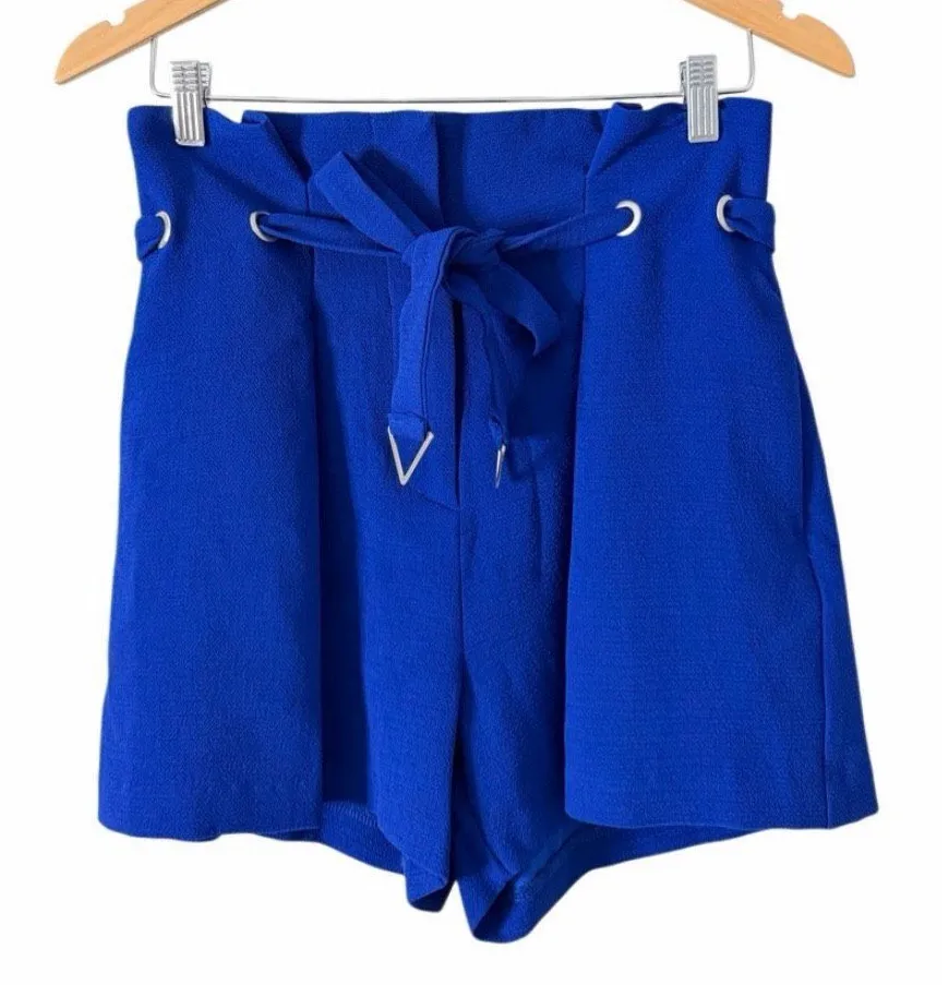 Allen Schwartz Blue High Rise Casual Textured Shorts Size 2 Tie Front NEW - $48 New With Tags - From Brenda