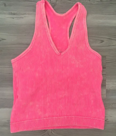 Acid Washed Hot Pink Racer back Ribbed crop size L/XL with removable pads - $21 - From Beth