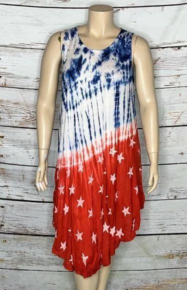 Seven Islands NWT Size 2X Tie Dye American Flag Star Print Tunic Coverup Dress Blue - $26 New With Tags - From Gabrielle