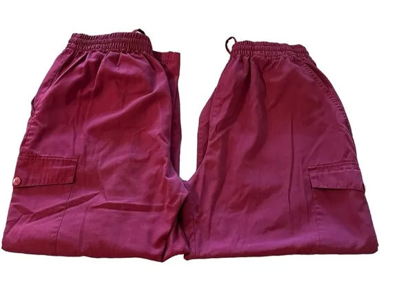 Adar Uniform Pants women's size XL set of 2 maroon, cargo, elastic waist Pink - $14 - From Monique