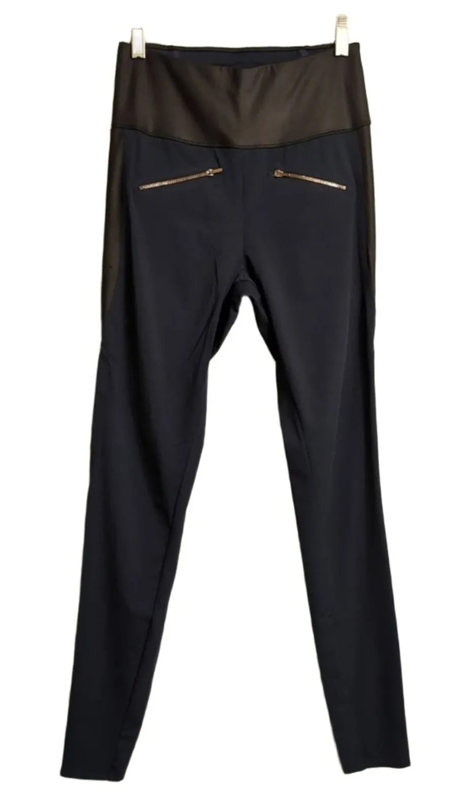 ADAY Throw It Higher Leggings Navy Black Gold Zipped Pockets High Waisted Slim Fit Athleisure S These ADAY pants blend comfort with a chic athletic look, perfect for versatile styling. Featuring stylish gold-toned zipper details and a flattering high-waisted design, they're an everyday essential. Condition: Good pre-owned condition NOTE: Small imperfection/flaw (see photos for details) Size: Small Features: Gold-toned zipper details, Contrasting high-waist band, Slim fit, Two rear zippered pockets, Color-block design, Stretch fabric Brand: ADAY Type: Slim-Fit Pants Style: Athleisure, High-Waist Color: Navy Black Material: Body: 59% Nylon 41% Elastane. Contrast: 79% Polyester 21% Elastane. Measurements: Waist: 12.5 inches Inseam: 29 inches Rise: 11 inches Keywords: athletic, comfort, modern, performance, activewear, stretch, yoga, versatile, sleek, colorblock