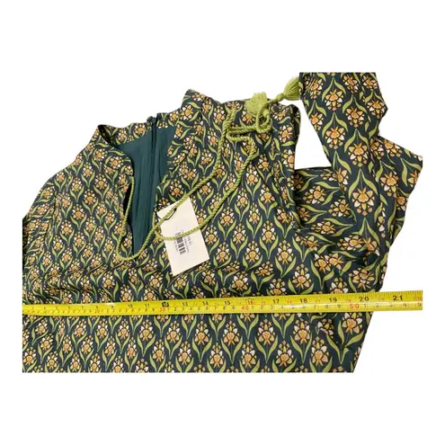 A charming boho mini dress with a captivating floral pattern. This dress features a high neckline with a tassel tie detail and decorative green trim accentuating the waist. The long sleeves are gently puffed, and the hemline is finished with a coordinating green band and playful fringe. Perfect for a casual day out, a weekend brunch, or a music festival. Size : Large Style: A-Line, Shirt Dress Dress Length: Short Department: Women Sleeve Length: Long Sleeve Pattern: Geometric Occasion: Casual, Party/Cocktail Fabric Type: Woven Theme: Bohemian, Hippie Neckline: High Neck Season: Spring, Fall Sleeve Type: Balloon Sleeve Closure: Drawstring Accents: Tasseled, Fringe Keywords: bohemian, mini dress, floral print, tassel, puffed sleeves, fringe hem, day dress, brunch outfit, festival wear, unique pattern, statement dress, eclectic style, quirky fashion