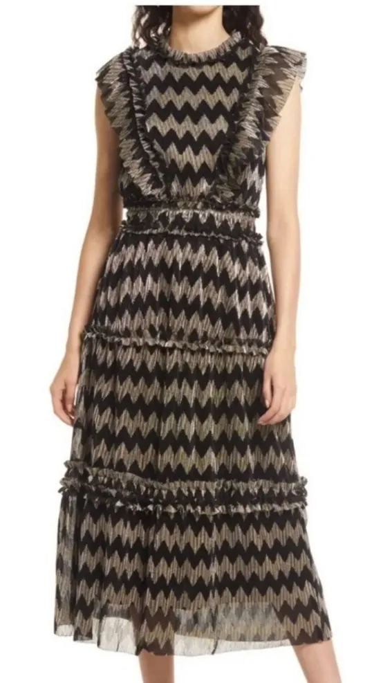 Adelyn Rae agatha metallic pleated midi tier ruffle Cap Sleece black gold Dress Size M - $50 - From Miriam