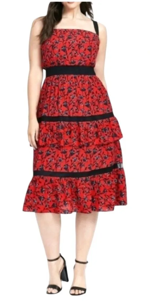 Chic and eye-catching midi dress from Adelyn Rae, perfect for your next party or summer outing. This sleeveless dress features a vibrant red floral print complemented by black lace insets and flouncy ruffles, creating a playful yet sophisticated look. Designed with tiered ruffles and a flattering silhouette, it offers both style and comfort. With its adjustable straps, you will be able to adjust the dress to your perfect fit. Great Pre-Owned Condition (see pics for details) Measurements: armpit to armpit 16 in, waist side to side 14, length 41 in designer, luxury, preppy, coastal, colorful, floral, whimsical, dainty, romantic, party, wedding, cocktail, festival, hippie, peasant, boho, bohemian, cottagecore, chic, beach, beachy, resort wear, mini, vacation, travel, boating, stylish, flowy, Trendy, Easy, Breezy, Feminine, Dreamy, Beachy, Vacation, Fashion Find, Wmns, Romantic, Cruisewear, Resort, Resortwear, Beach, Beachy, Vacay, Vacation, Size 0, Size 2