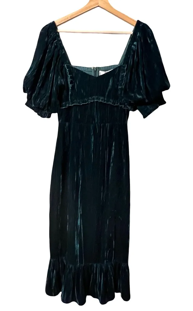 NWT Adelyn Rae Womens Smocked Milkmaid Babydoll Maxi Dress Size S Green Velvet -Size SMALL -New With Tags -See photos for measurements -Puff Sleeve -Emerald Green Velvet -Square neckline -Empire waist -Smocked back panel -Front side slit -Ruffled hem -Concealed back zipper closure milkmaid, babydoll, holiday, Christmas, romantic, party, Victorian, cottagecore, cocktail, wedding guest, special occasion