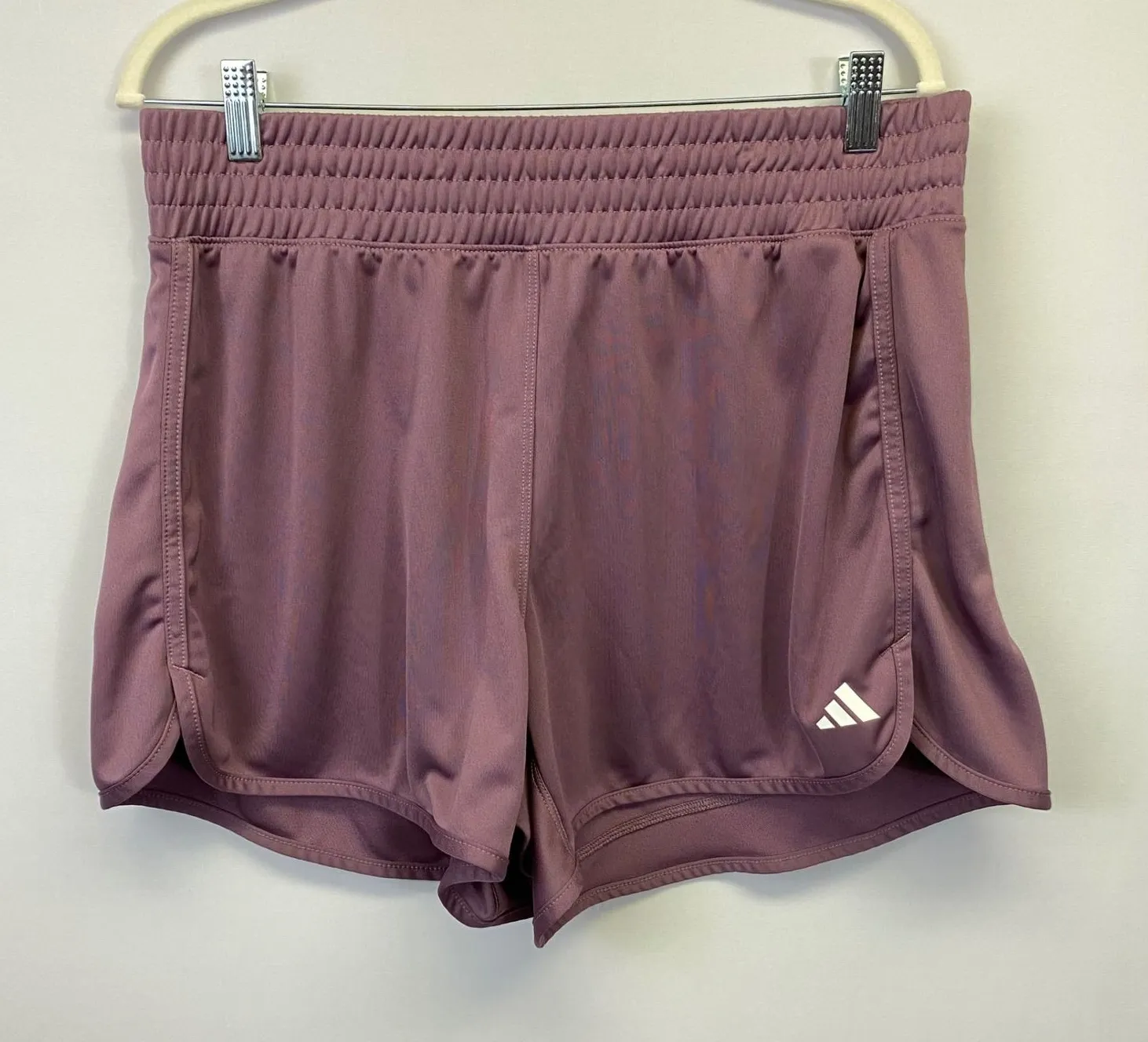 Adidas athletic shorts in a muted mauve tone with an elastic waistband and relaxed fit. Lightweight... Show more