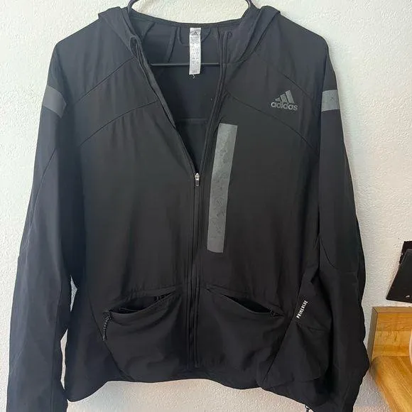 Stylish Adidas jacket with a zip-up front. Features a hood and two front pockets. Perfect for casual... Show more