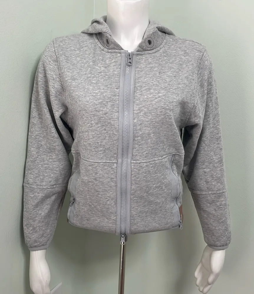 Gray jacket with front zipper and side zippers Peach elastic back name band Preowned