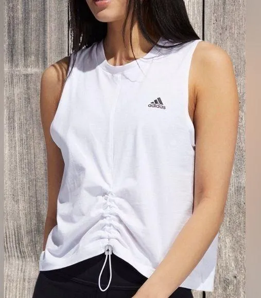 ADIDAS Cinch Tank/Top WHITE Light Weight Knit COTTON Activewear SLEEVELESS - $16 - From C
