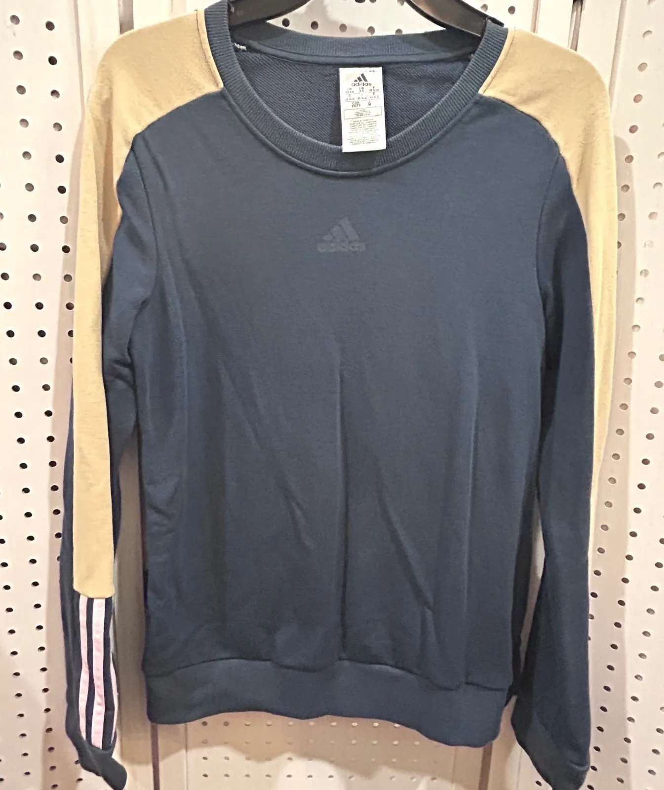 Excellent. Ptp is 17.5 and length is 25. Adidas crewneck sweatshirt with a deep navy blue body and... Show more