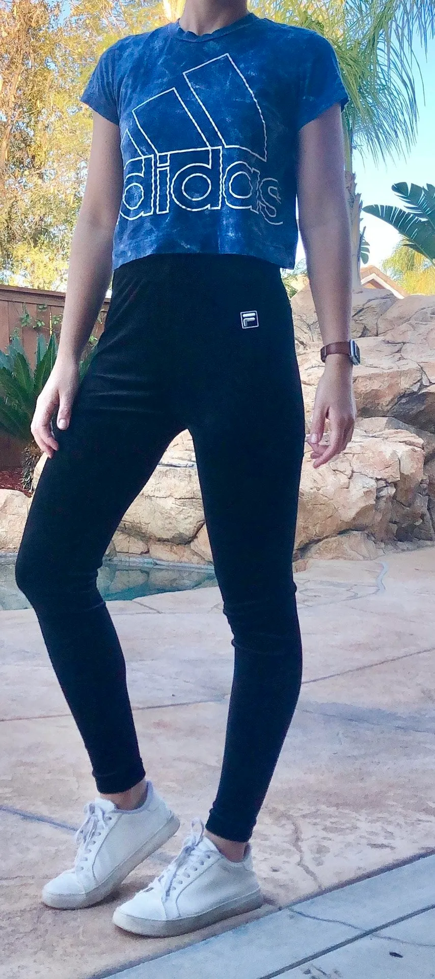 Navy Blue Tye-Dye Color Size Small White Adidas Logo on front Blue adidas logo on back by neck In g... Show more