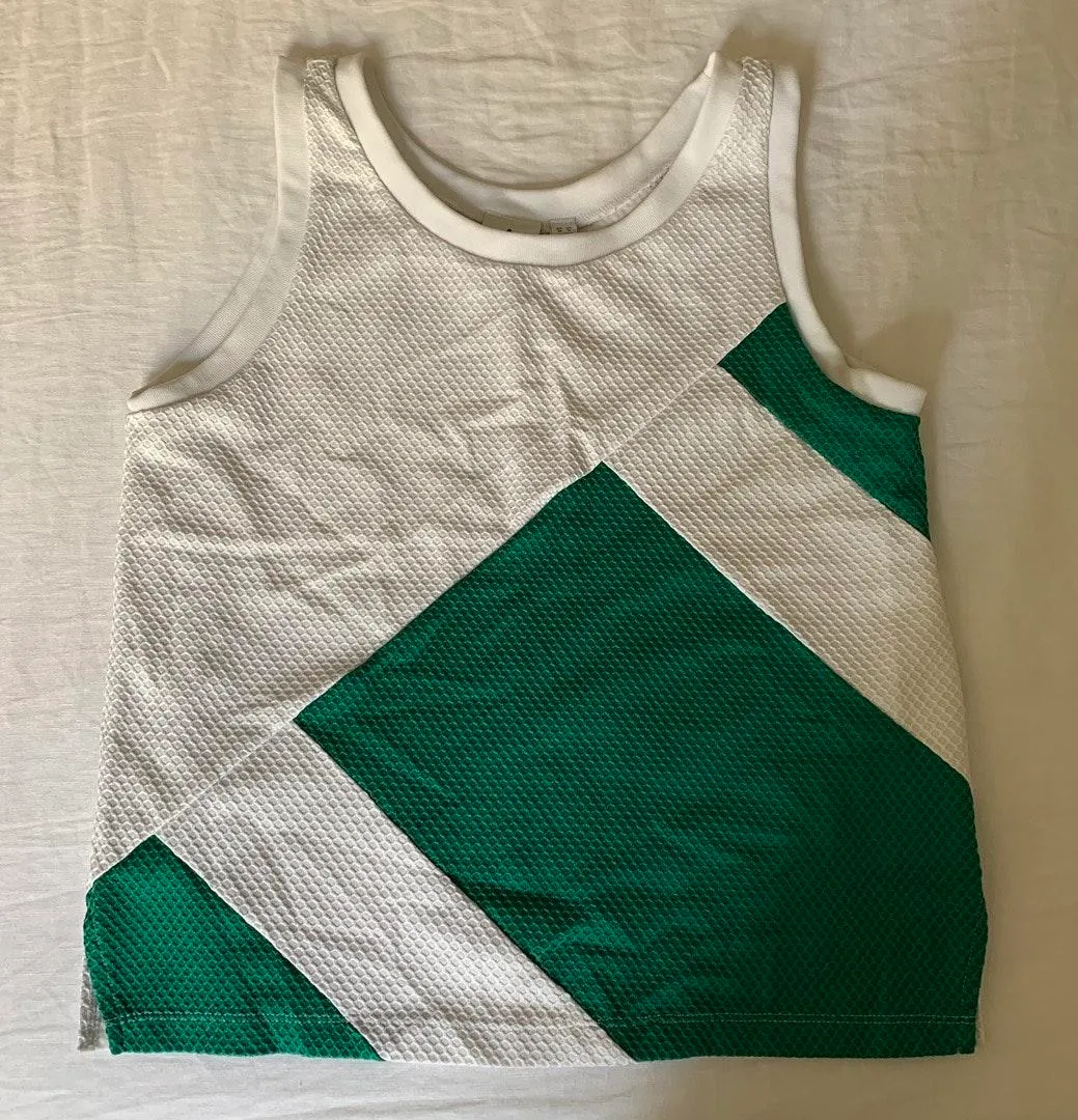 Adidas workout tank with green 3 stripe logo. In excellent condition.
