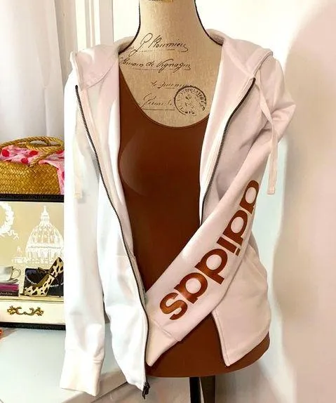 Adidas hoodie. White with rose gold letters. NWOT. No stains wear or tear. Flawless.