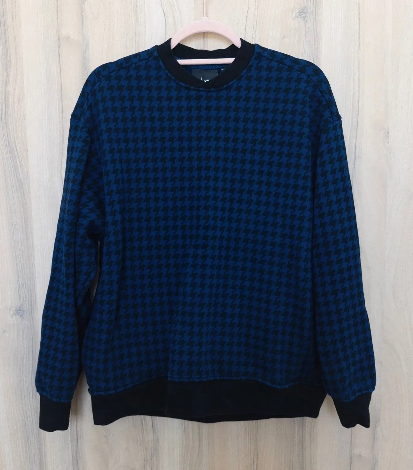 ADIDAS IVY PARK houndstooth crewneck sweatshirt in blue and black. This stylish sweatshirt features a classic houndstooth pattern throughout, a comfortable crew neckline, and ribbed cuffs and hem for a secure fit. Perfect for layering or wearing on its own, this piece adds a bold touch to any casual outfit. Ideal for weekend outings, athleisure wear, or running errands. Style: athleisure, preppy, dark academia, old money, modern prep, streetwear, quiet luxury Approximate Measurements (taken flat lay): Length: 26" Pit to Pit: 23" Excellent condition. No visible flaws. See all photos for details. Ships next business day. Bundle deals available. Smoke-free home. Please check measurements before purchasing. SKU: 4091