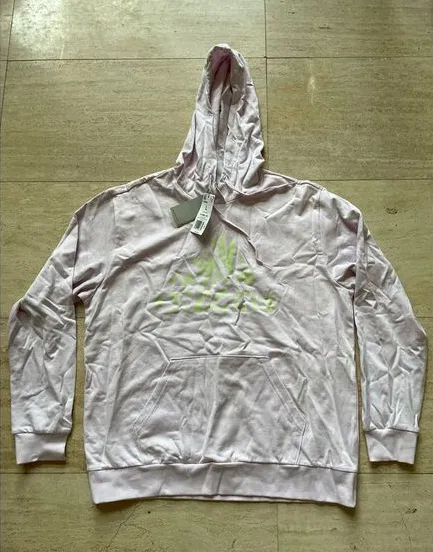 Classic Adidas hoodie in pristine light pink with eye-catching neon green logo graphic. Features a c... Show more