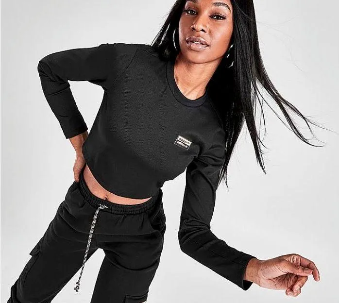 Adidas Originals Outline Ribbed Crop Long-Sleeve Shirt Color: Black with orange logo (as seen in pic... Show more