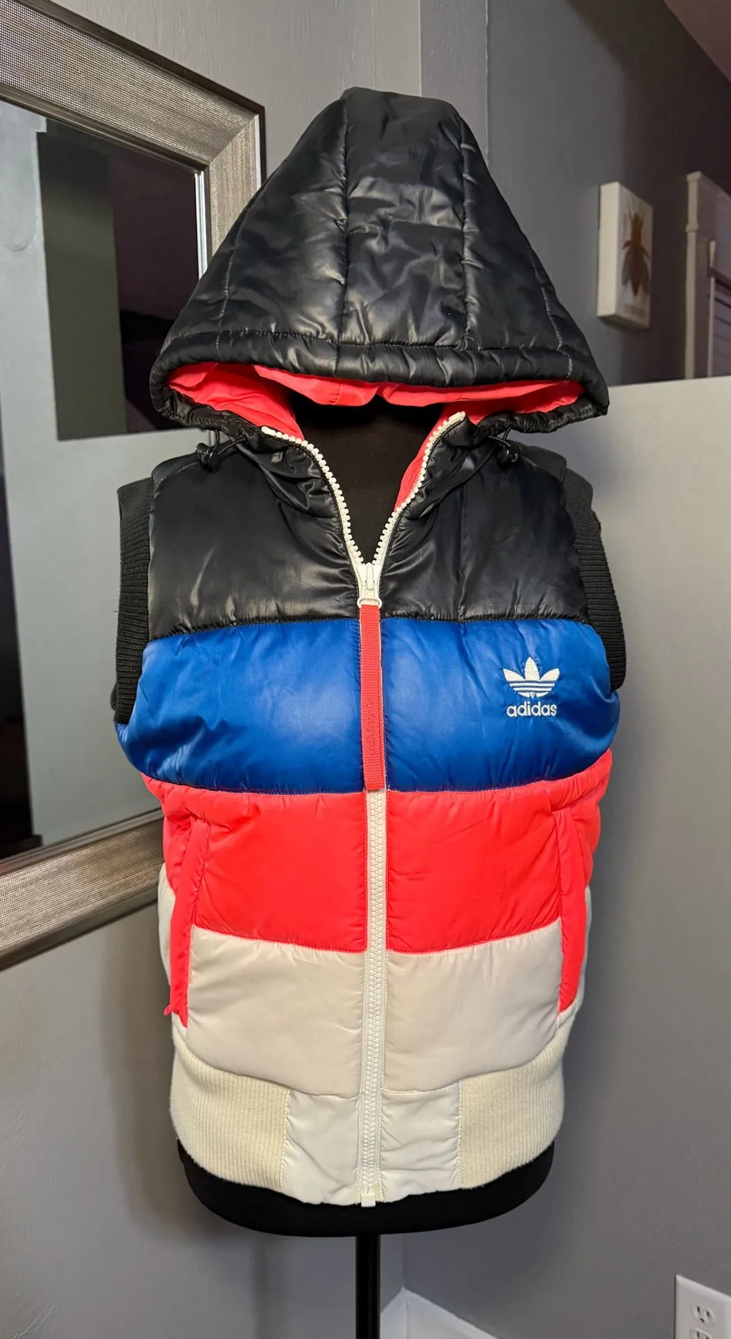 Adidas Originals women's Colorado Y2K Colorblock Puffer Vest Medium (90). Length 24in , p2p 20in