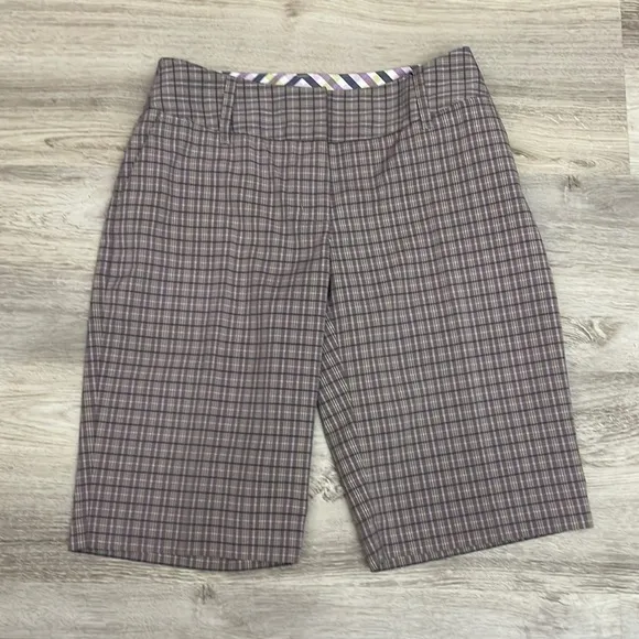 Adidas Purple, Blue & Yellow Plaid Women's Bermuda 12" Inseam Golf Shorts Size 4 Embroidered Logo on... Show more