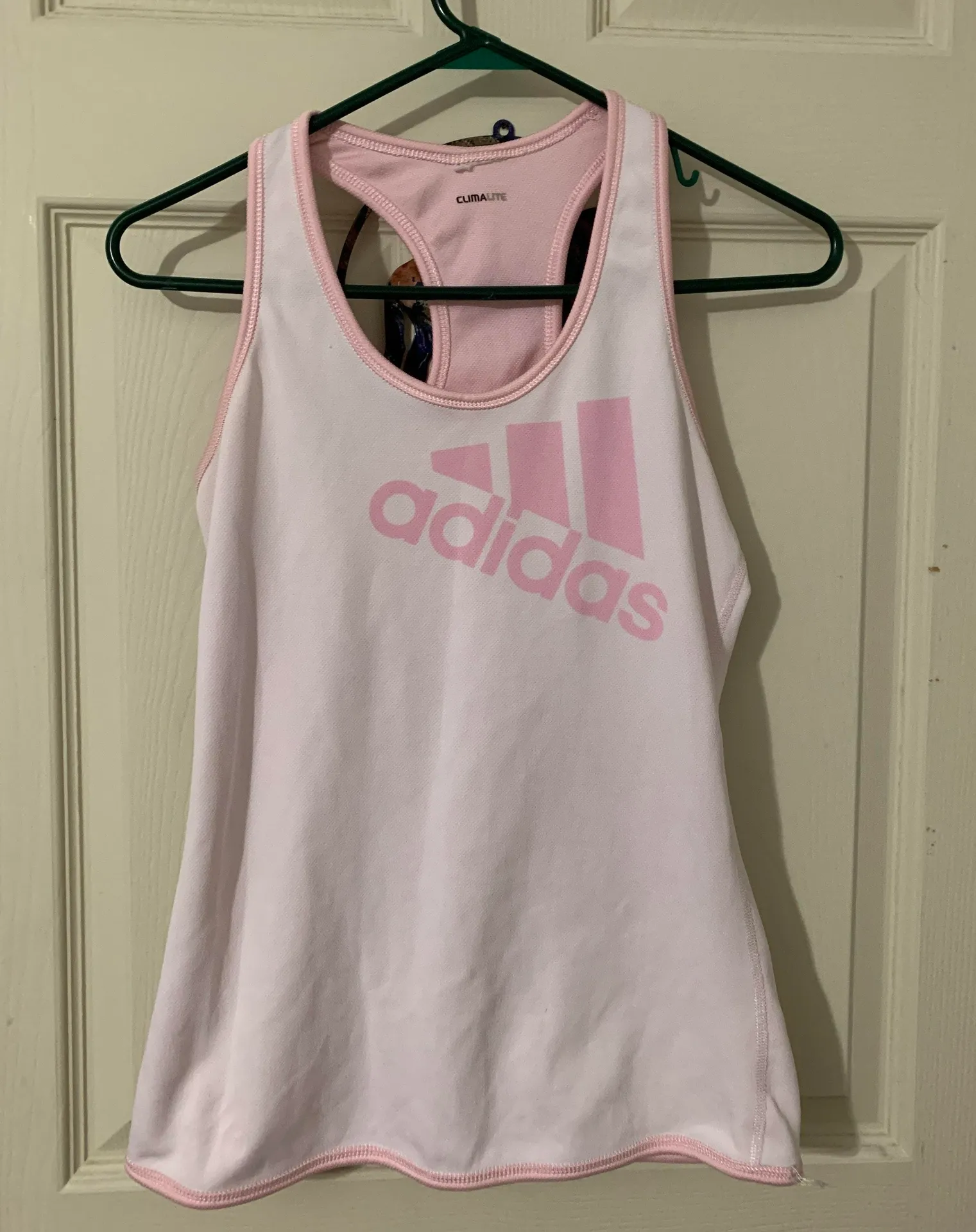 Reversible Adidas tank top. Barely worn and excellent condition! Pink and white. Fits a xs through m... Show more