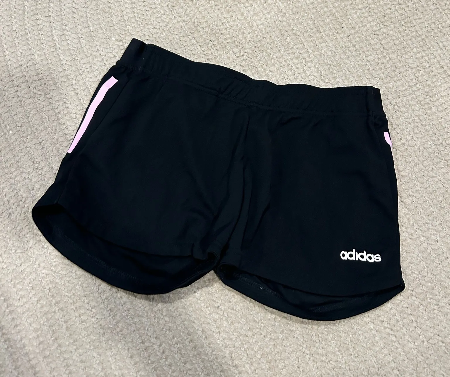 Adidas black shorts with light pink accents. Dot of “i” is missing. Size small. Adidas primegreen. S... Show more