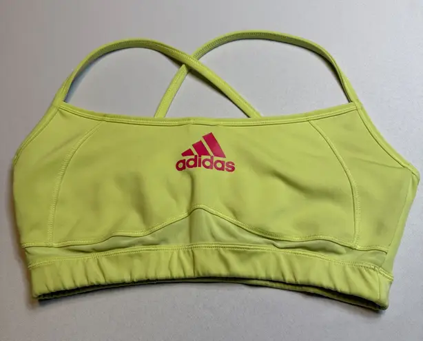 Electrify your workout with this vibrant Adidas sports bra. Featuring a striking yellow hue and eye-... Show more
