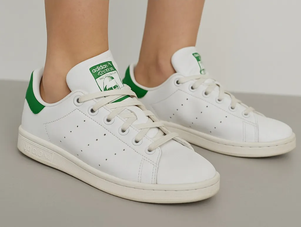 Adidas Stan Smith “Primegreen” sneakers — classic white with green heel tab. Made with eco-friendly... Show more