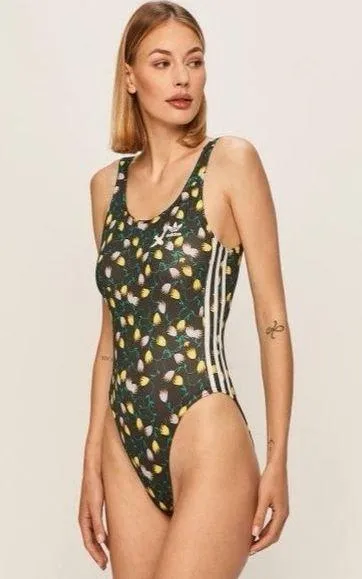 Adidas bodysuit No size see measurements Black yellow purple Tulip floral print Logo front Side st... Show more
