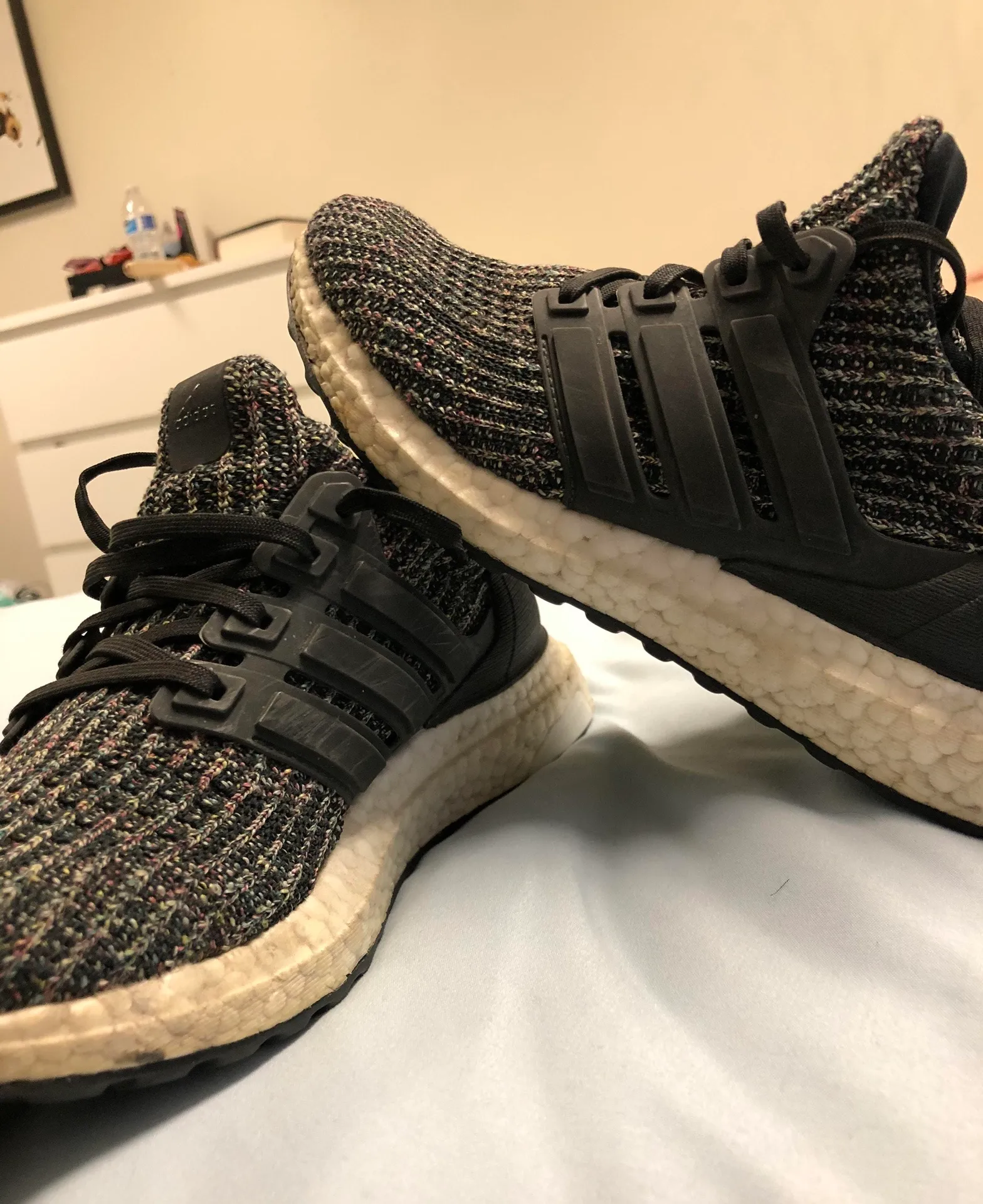 They are multicolored but they look black from far away and in pictures. I bought these off of Poshm... Show more