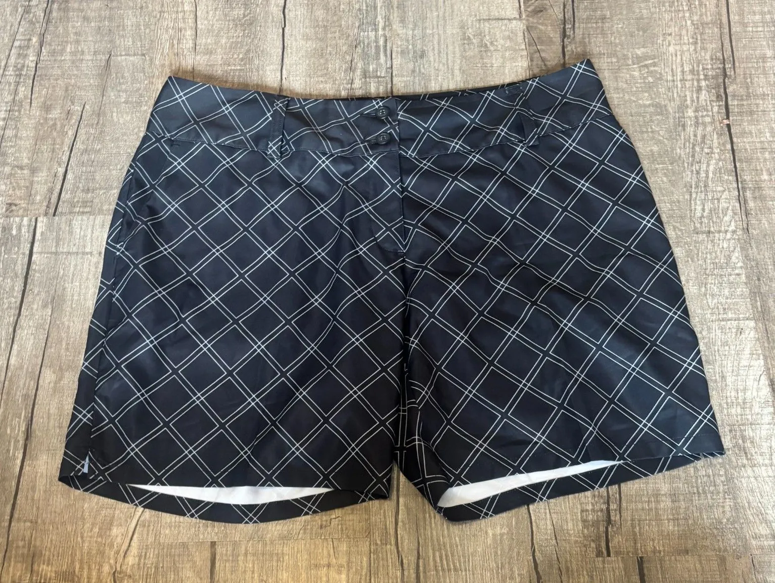 Adidas Women’s Performance Golf Shorts in Size 12, featuring a classic black and white plaid pattern... Show more