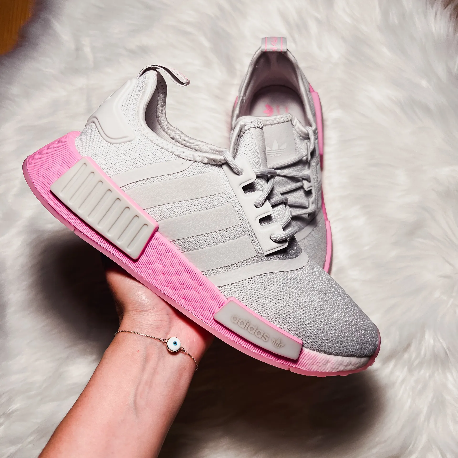 Adidas Women's NMD R1 Shoes Size: 9 Color: Grey One / Bliss Pink / Cloud White Lace closure Stret... Show more