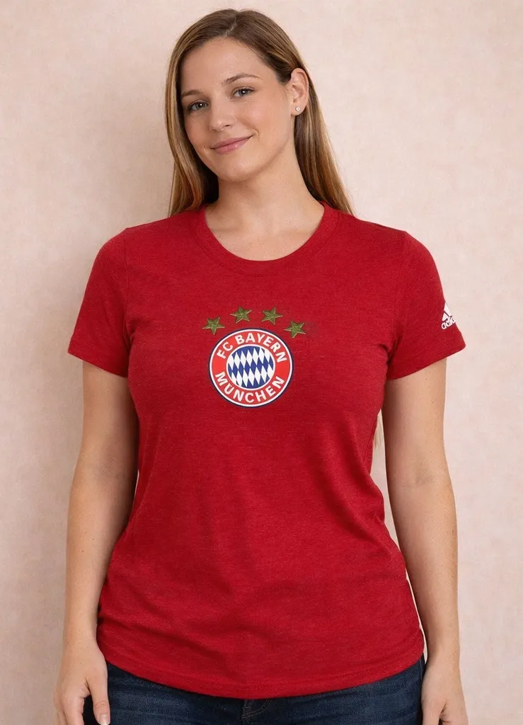 Adidas FC Bayern Munich T-Shirt – Women’s Red Soccer Tee Description Official Adidas FC Bayern Mun... Show more