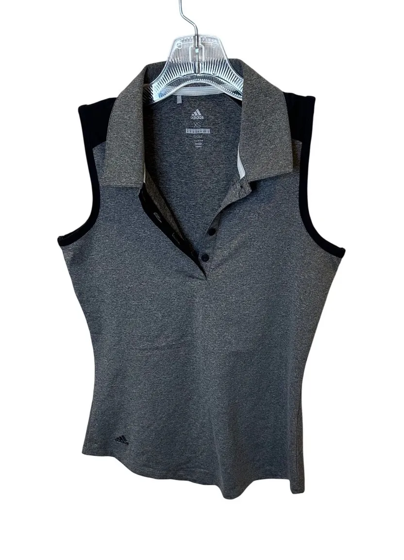 Adidas women's grey sleeveless golf polo shirt. This athletic top features a collared neckline with... Show more