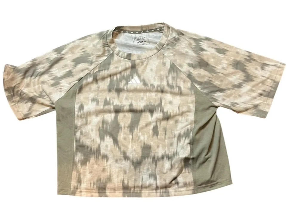 Adidas Women's Train Essentials Allover Print Flower Tie-Dye T-Shirt Silver Pebble Size XS A graphic... Show more