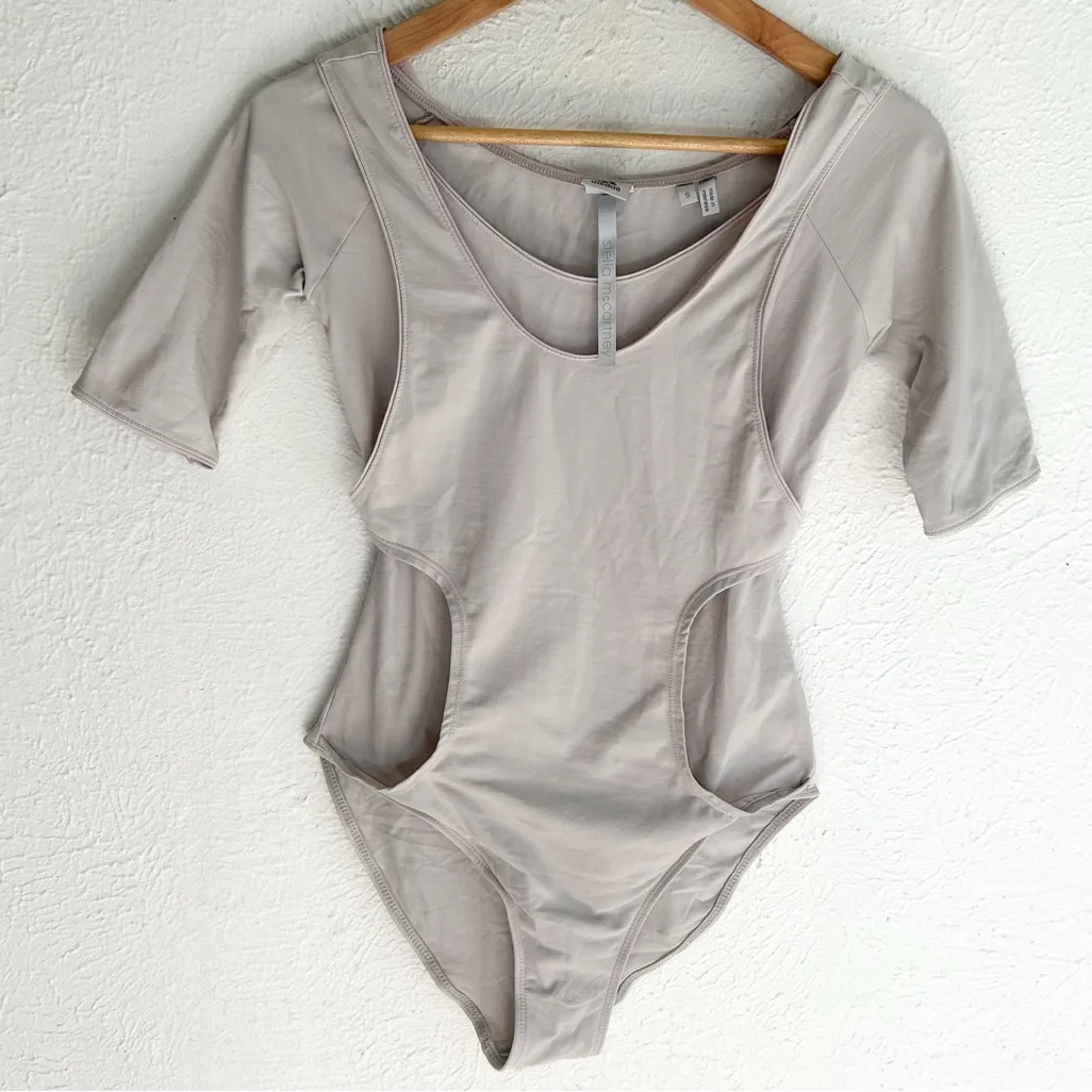 Elevated Y2K athleisure bodysuit from Adidas by Stella McCartney in a soft neutral beige/taupe tone. Features a sculpting, second-skin fit with flattering curved seam details and dramatic side cutouts that cinch the waist beautifully. The scoop neckline and short sleeves give it that sleek early-2000s studio-to-street vibe. Excellent preowned condition ▫️Armpit to armpit-15” ▫️Length-27” Measurements are approximate pilates core, balletcore, model off duty, sporty chic, designer athleisure, fitted bodysuit