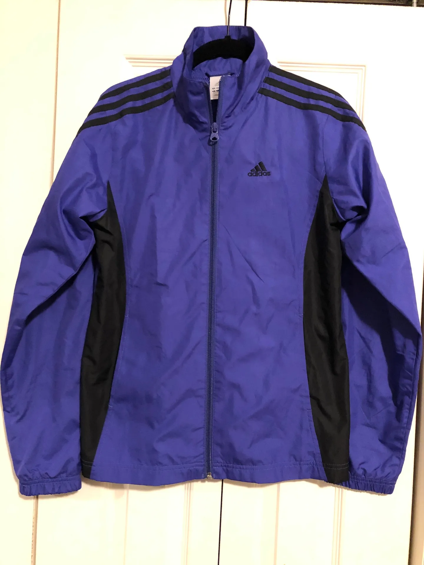 Dark purple adidas zip jacket. Windbreaker type jacket. No flaws. Size small.