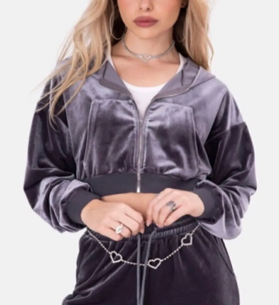 Adika Gambino Gray Zip-Up Velvet Crop Top Hoodie Size XL In excellent like new preowned condition... Show more