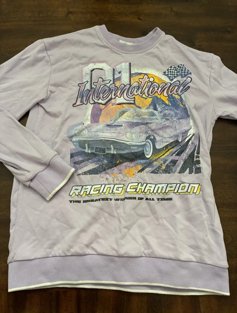 Adika Graphic Crewneck Sweatshirt Women’s Medium Large Purple Racing Champion - $10 - From Daphne