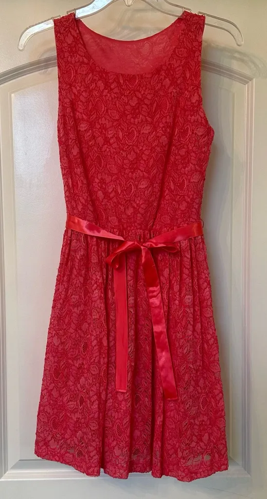 Adorable coral lace overlay dress with ribbon belt! Perfect condition! 💕 Size M - $10 - From Blair