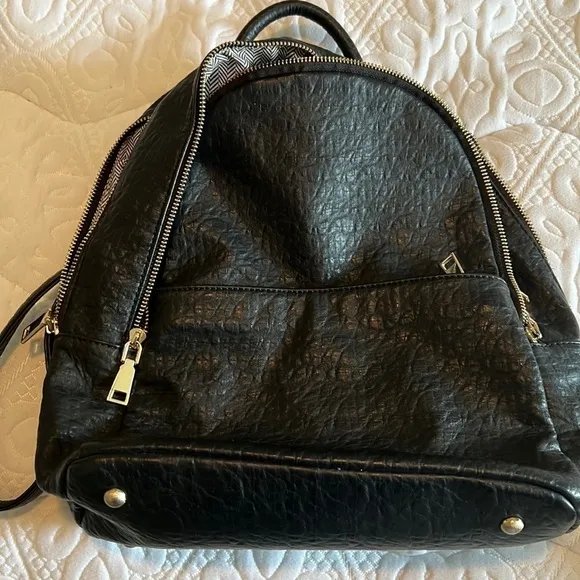 Adorable faux leather backpack with lots of pockets black and gold - $20 - From Ashley