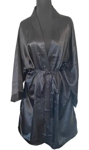 Adore Me women's robe in a sleek black satin-look finish. Soft and lightweight with kimono sleeves a... Show more