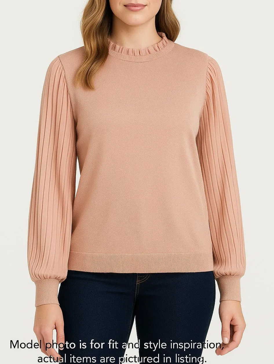 Adrianna Papell Pearl Blush Ruffle Neck Pleated Sleeve Sweater Women’s Size Large Key Features: Pea... Show more