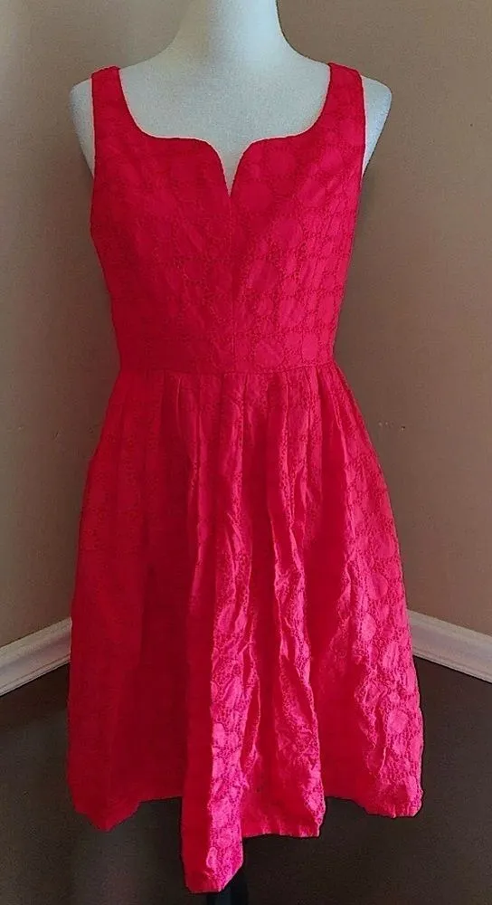 Adrianna Papell “Don’t Spin It All In One Place” hibiscus red (coral red) eyelet fit and flare sleev... Show more